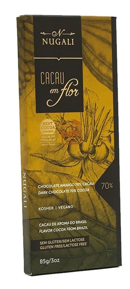 Premiado com Medalha Bronze 2019 e Prata 2020-21 pela International Chocolate Awards - Américas, o Chocolate Amargo 70% Cacau em Flor é feito com cacaus brasileiros de variedades Trinitários e Scavina.